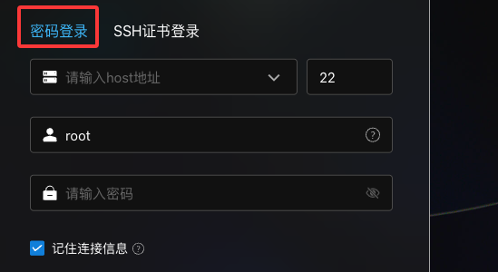 1?? 密碼登錄: 輸入服務器賬號和密碼直接連接;