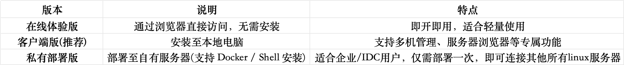 GMSSH 目前提供三種版本,滿足不同場景需求: