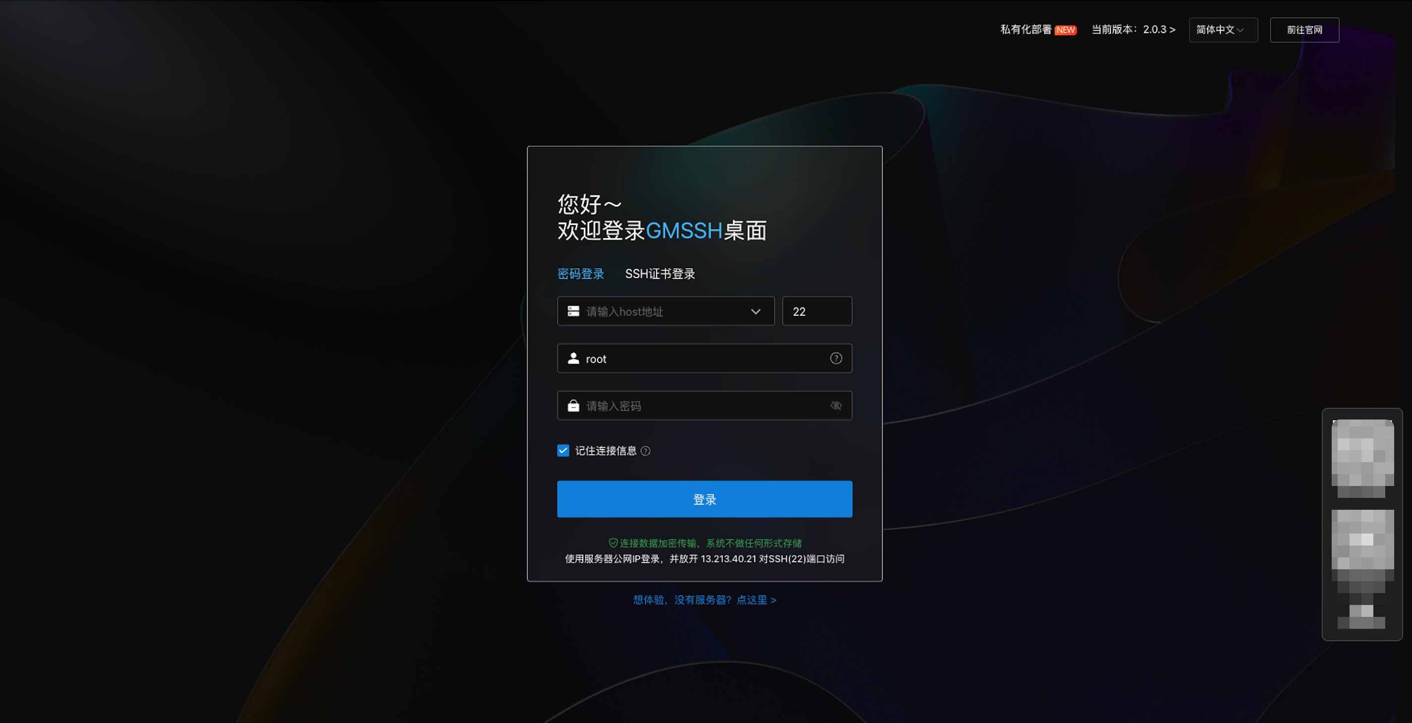 1?? 打開您選擇的 GMSSH 產品(在線版 / 客戶端 / 私有部署)