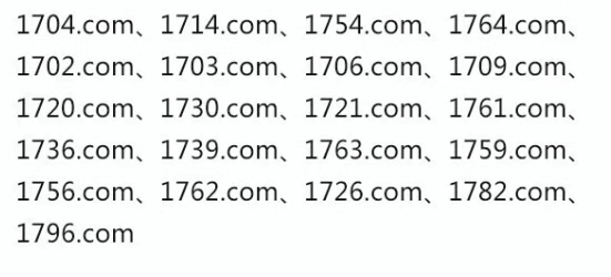 今天得到業(yè)內(nèi)消息,數(shù)字域名愛(ài)好者,被稱(chēng)為“王氏三兄弟”中的王炳輝又再次大筆一揮入手了一批精品四數(shù)字.com域名,數(shù)量總計(jì)21枚,而且這批數(shù)字米均是以17開(kāi)頭,如圖: